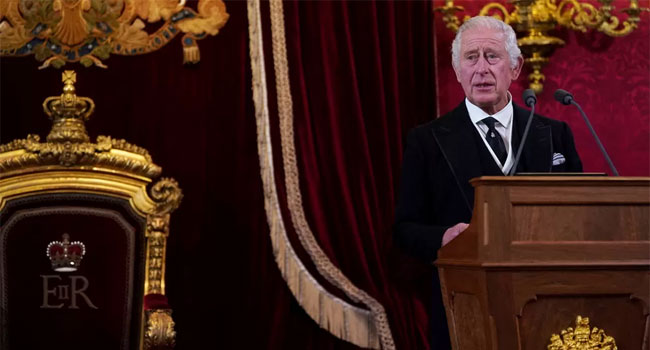 শনিবারে নতুন রাজার অভিষেক অনুষ্ঠানটি দুইভাবে বিভক্ত ছিলো। প্রথম পর্বে আনুষ্ঠানিকভাবে রানীর মৃত্যুর ঘোষণা ও নতুন রাজার নাম ঘোষণা করা হয়। প্রিভি কাউন্সিলের ক্লার্ক তৃতীয় চার্লসকে রাজা ও কমনওয়েলথের প্রধান হিসেবে ঘোষণা করেন। এবং উচ্চকণ্ঠে গড সেভ দ্য কিং উচ্চারণ করেন। এ সময় উপস্থিত অন্যরাও একই বাক্য উচ্চারণ করেন। এরপর রাজপরিবারের সদস্য, প্রধানমন্ত্রীসহ গুরুত্বপূর্ণ ব্যক্তিরা ঘোষণাপত্রে সই করেন। এরপর সেটি পাঠ করে শোনানো হয়। এর মধ্যে দিয়ে নতুন রাজার নিয়োগ চূড়ান্ত হয়।